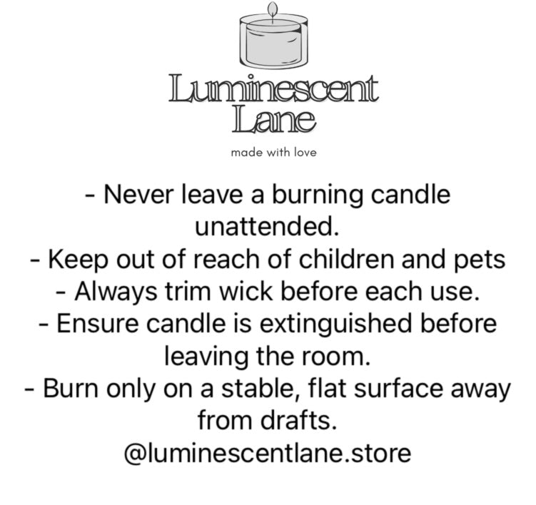 Note: You may notice frosting on the surface of your candle—this is a natural occurrence with soy wax and does not affect the scent, burn quality, or safety of your candle. Each candle is hand-poured with care, and frosting is simply part of the natural qualities of soy wax, giving your candle a beautiful, authentic finish.